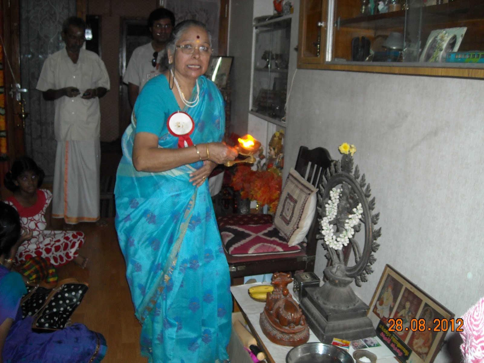 Smt. Nalini Ramprasad doing the Aarthi to the Lord.